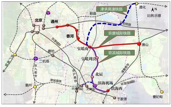 京濱鐵路起自寶坻南站,終至濱海西站,與京唐鐵路共同構(gòu)成京津之間的第3條高鐵通道。線路長度約97公里,總投資238億元,全線共設(shè)置寶坻南、寶坻周良、北辰、濱海機(jī)場、濱海西5座車站。京濱鐵路建成后,北京直達(dá)天津濱海新區(qū)只需57分鐘,從寶坻南站到北京站僅需18分鐘,寶坻到天津機(jī)場只需15分鐘。