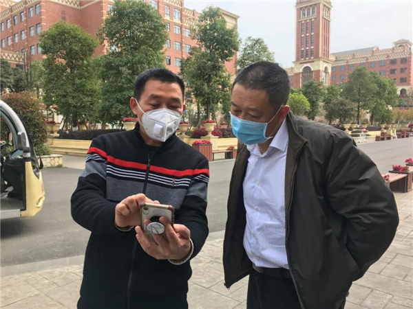 辜英智董事長(zhǎng)向李書(shū)記介紹我院紀(jì)檢、人事、教務(wù)部門(mén)每日督察各班在線教學(xué)開(kāi)展情況,并每日在干部群匯報(bào)