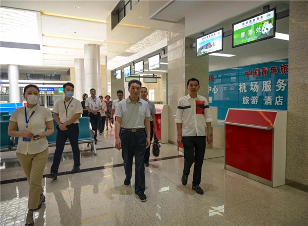 在學(xué)院大門口,宋思彬一行首先體驗(yàn)了紅外線體溫監(jiān)測,并詳細(xì)了解紅外線測溫儀的特點(diǎn)和使用方法。辜英智向宋思彬一行匯報(bào)了學(xué)院每棟樓的名字由來,每一個(gè)雕塑的含義,以及學(xué)院建筑風(fēng)格等。穿過寬闊的瑞麗廣場,來到學(xué)院的實(shí)訓(xùn)中心。宋思彬一行詳細(xì)詢問了空客的安檢流程,并對(duì)安檢的質(zhì)量予以了高度的評(píng)價(jià)。他坦言,在這里有一種置身機(jī)場的感覺。