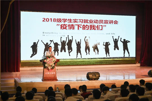 會議伊始,由高職學(xué)院王志鴻院長講話,他說,新冠疫情波及全球,在不平凡的2020年里,學(xué)院認真落實上級教育部門“停課不停教,停課不停學(xué)”的要求,為同學(xué)們提供線上教育,疫情未能阻止學(xué)院與同學(xué)們的聯(lián)系。他希望同學(xué)們要樹立正確的就業(yè)觀和擇業(yè)觀;學(xué)會感恩父母、感恩師生,珍惜實習(xí)就業(yè)機會,發(fā)揚天航學(xué)子的精神。