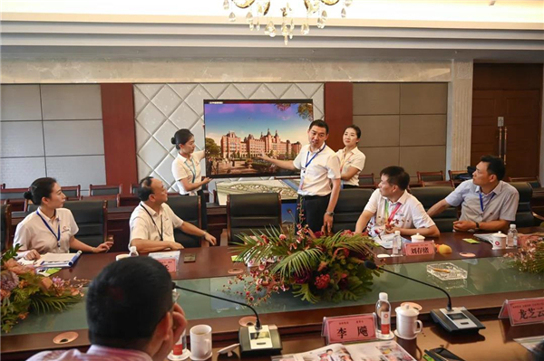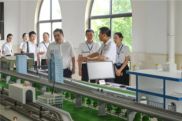 辜英智向李飚一行講解了學(xué)院每棟樓的名字由來、建筑風(fēng)格、地理位置等。并參觀了學(xué)院實(shí)訓(xùn)中心的實(shí)訓(xùn)設(shè)備,多彩大講堂、鐘樓等特色建筑。