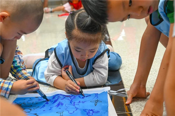 在水上訓(xùn)練室的A320/A330出口模擬器前,小朋友們?cè)诶蠋煹闹笇?dǎo)下有序的從艙門撤離到水面救生艇上,并學(xué)習(xí)了飛機(jī)在水上迫降后的撤離技能、海上求生技巧、游泳技能等。