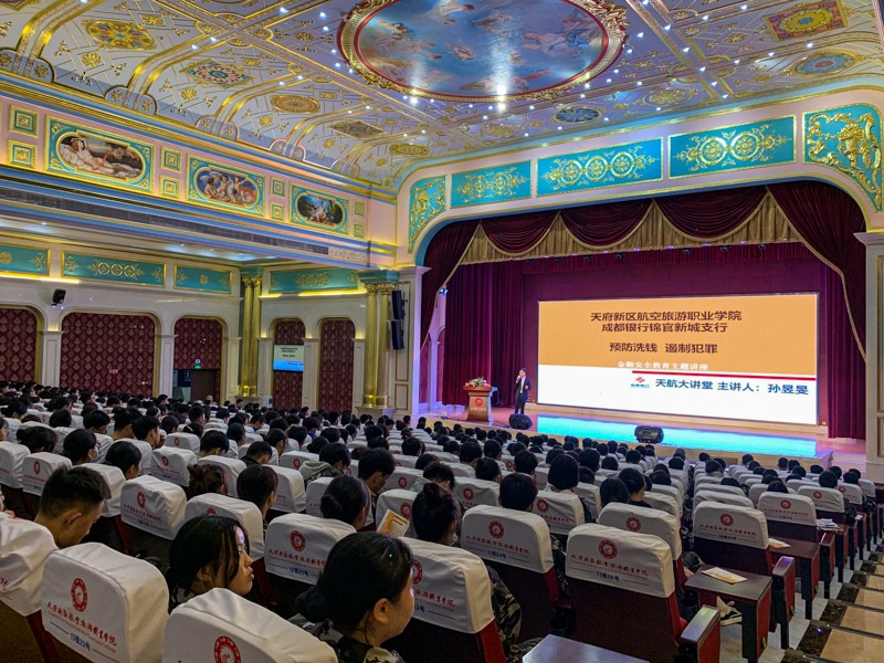 2021年10月27日14:00天府新區(qū)旅游職業(yè)學(xué)院-民航運(yùn)輸學(xué)院邀請成都銀行錦官新城支行行長孫昱旻先生和成都無糖信息技術(shù)有限公司李娜老師在多彩大講堂為2021級新生組織開展“反洗錢和金融安全”專題教育講座。