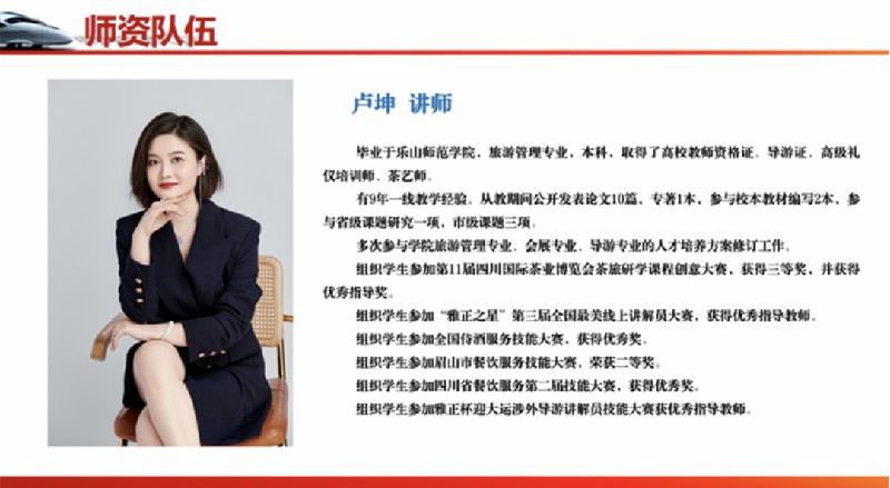 旅游與軌道交通學(xué)院所配備的專業(yè)教師,均有相關(guān)企事業(yè)行業(yè)工作經(jīng)驗(yàn)及多年教學(xué)工作經(jīng)驗(yàn),并在相關(guān)專業(yè)領(lǐng)域上均有一定學(xué)術(shù)研究。近年來(lái)教師帶領(lǐng)學(xué)生參加市級(jí)、省級(jí)、國(guó)家級(jí)各項(xiàng)比賽,獲獎(jiǎng)20余項(xiàng),其中國(guó)家級(jí)獎(jiǎng)項(xiàng)3項(xiàng),省級(jí)獎(jiǎng)項(xiàng)17項(xiàng)。不定期組織學(xué)生在校外開(kāi)展第二課堂,進(jìn)行相關(guān)課程的實(shí)踐教學(xué),獲得良好反響。