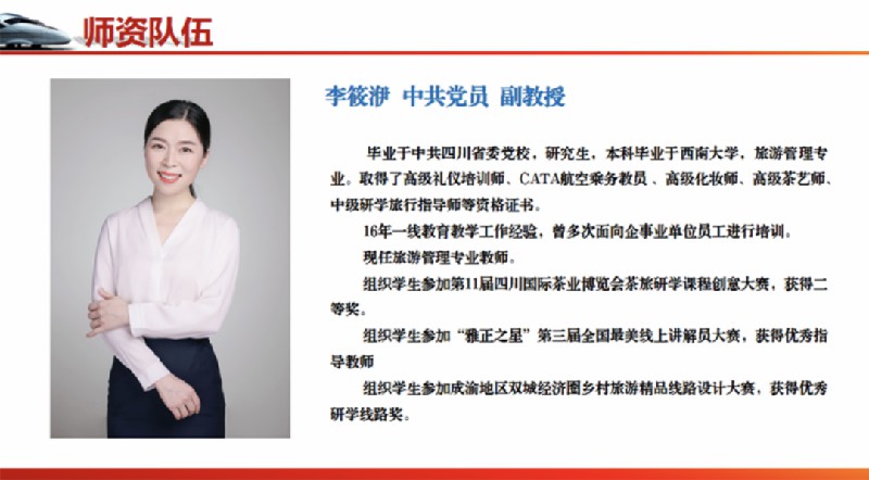 天府新區(qū)航空旅游職業(yè)學(xué)院旅游與軌道交通學(xué)院,是以旅游、城市軌道交通、高速鐵路為主要培養(yǎng)方向,開(kāi)設(shè)專業(yè)有:高速鐵路客運(yùn)服務(wù)、城市軌道交通運(yùn)營(yíng)管理、旅游管理、會(huì)展策劃與管理專業(yè)。每個(gè)專業(yè)均配備相應(yīng)的實(shí)訓(xùn)室,現(xiàn)有實(shí)訓(xùn)室:城市軌道交通模擬實(shí)訓(xùn)室、復(fù)興號(hào)(高速鐵路模擬實(shí)訓(xùn)基地)、旅游管理實(shí)訓(xùn)室、會(huì)展與策劃實(shí)訓(xùn)室、茶藝室、餐飲實(shí)訓(xùn)室、智慧旅游實(shí)景互動(dòng)教學(xué)實(shí)訓(xùn)室等實(shí)訓(xùn)設(shè)備,讓學(xué)生在校就能進(jìn)行相關(guān)的實(shí)訓(xùn)操作。