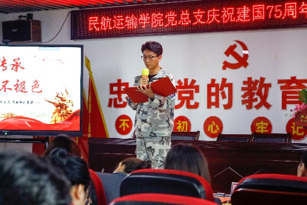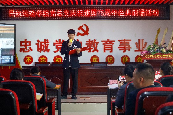 10月17日下午,民航運(yùn)輸學(xué)院黨總支在鳳凰樓404室隆重舉辦了“傳承紅色基因、學(xué)思踐悟中國共產(chǎn)黨人精神譜系——慶祝建國75周年經(jīng)典朗誦活動”。此次活動旨在通過朗誦經(jīng)典篇目,弘揚(yáng)紅色文化,傳承中國共產(chǎn)黨人的精神譜系,同時慶祝中華人民共和國成立75周年。