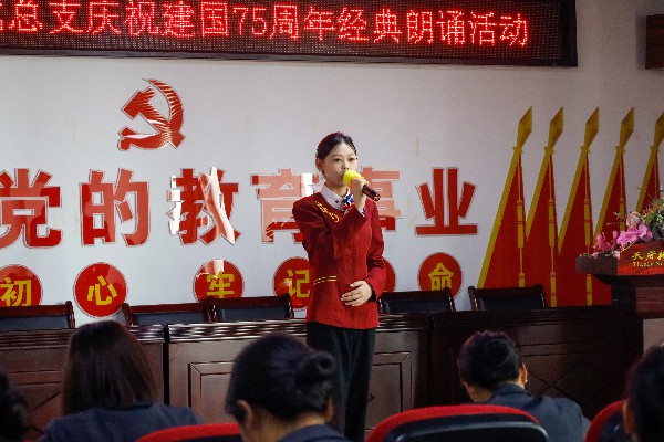 決賽現(xiàn)場,選手們用真摯的情感、激昂的語調(diào),深情地朗誦了一篇篇膾炙人口的紅色經(jīng)典,生動詮釋了紅色文化的深刻內(nèi)涵,表達(dá)了對革命先輩的崇敬之情和對祖國的熱愛之情,教師代表也友情參與活動,使得整個活動形式更加豐富多彩。