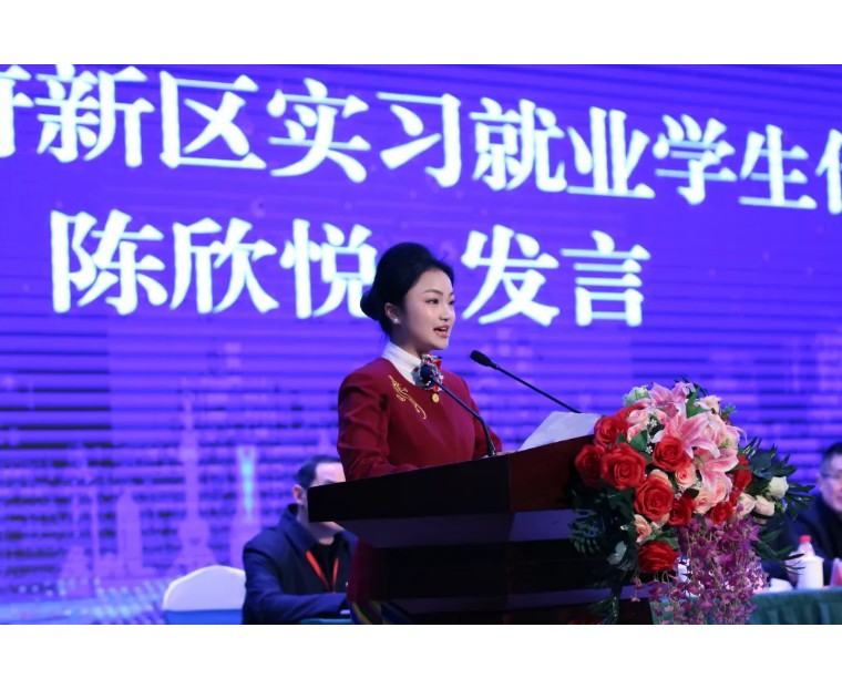 我校實(shí)習(xí)就業(yè)學(xué)生代表陳欣悅則講述了自己在學(xué)校的學(xué)習(xí)經(jīng)歷,以及對(duì)即將開(kāi)始的新區(qū)實(shí)習(xí)生活充滿(mǎn)著美好向往與期待。