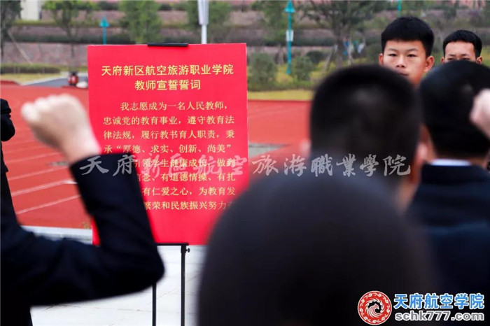 11月19日,學(xué)院在運(yùn)動場舉行了隆重而莊嚴(yán)的教師宣誓儀式,伴著洪亮的聲音,27名精神飽滿的老師在學(xué)院總督學(xué)辜英智先生的帶領(lǐng)下,對著五星紅旗莊嚴(yán)宣誓成為一名光榮的高等學(xué)校教師。學(xué)院院長劉存緒教授主持宣誓儀式并為27位老師頒發(fā)了《高校教師資格證》,這一沉甸甸的證書是他們堅守教育事業(yè),教壇辛勤耕耘得到的最好回報。