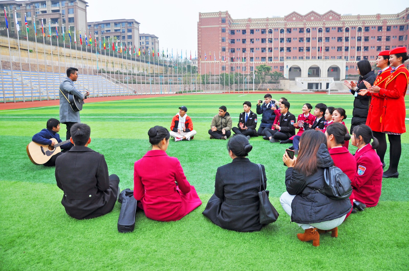 隨后,在臺(tái)下同學(xué)們的掌聲鼓勵(lì)下,他們用自己帶來(lái)的吉他在舞臺(tái)上一展歌喉,即興彈唱了中文歌曲《老男孩》與《成都》,外國(guó)友人的彈唱組合別有一番風(fēng)味,給老師和同學(xué)們帶來(lái)了不一樣的聽(tīng)覺(jué)享受。