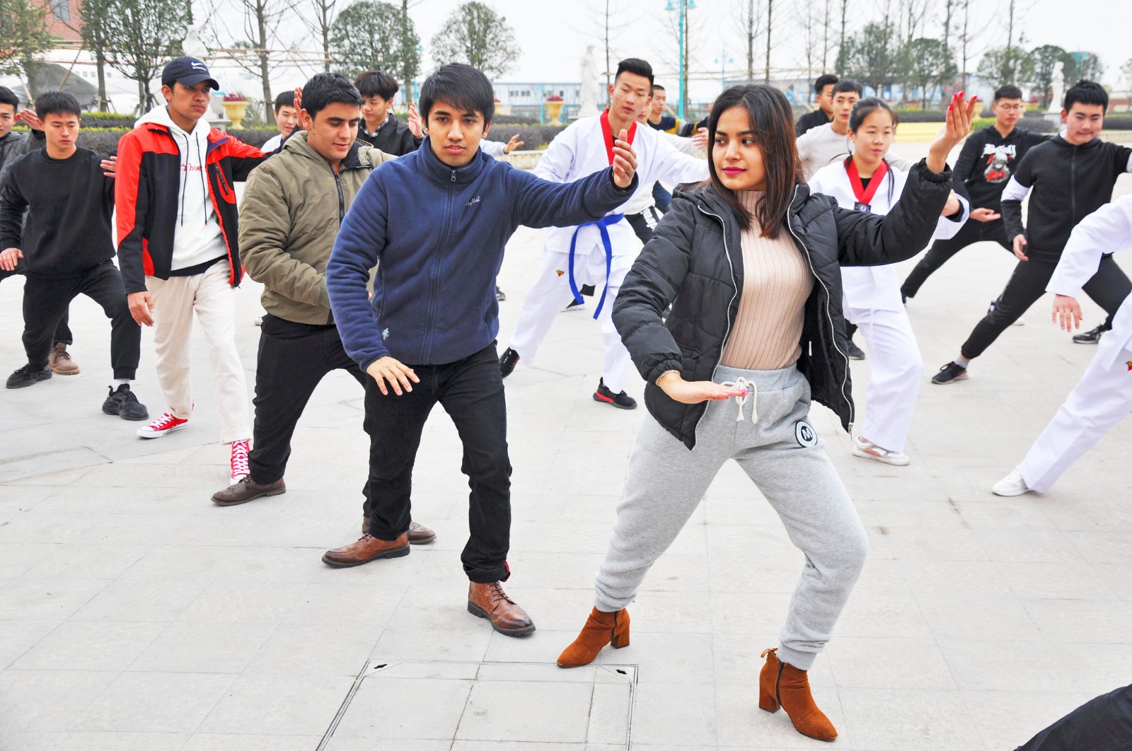 到校參觀期間,留學(xué)生們還觀看了學(xué)院武術(shù)社帶來(lái)的中華傳統(tǒng)武術(shù)的表演,并且跟隨武術(shù)老師學(xué)習(xí)太極拳,通過(guò)親身體會(huì),近距離感受了中華文化的博大精深。