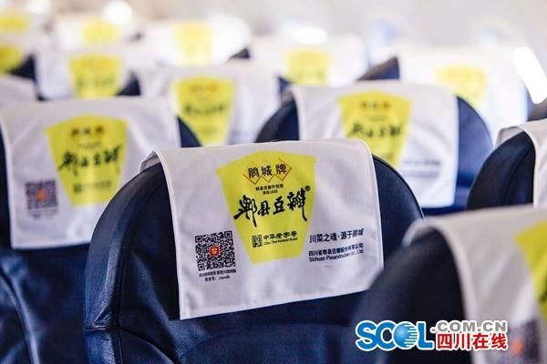 這是成都首張“美食文化空中名片”?!谤N城號(hào)”飛機(jī)機(jī)頭、機(jī)身以及飛機(jī)側(cè)面顯著位置標(biāo)示“郫縣豆瓣”、“鵑城號(hào)”,及“川菜之魂、源自鵑城”字樣。不僅外部涂裝,內(nèi)部也處處體現(xiàn)出品牌特點(diǎn),“郫縣豆瓣”元素隨處可見,還有精美的宣傳畫面和視頻展示等。今天的首飛之旅為乘客專門準(zhǔn)備了首航定制的伴手禮,機(jī)上更是開展了趣味的郫縣豆瓣知識(shí)問答游戲,讓整個(gè)空中行程變得歡快、溫馨。