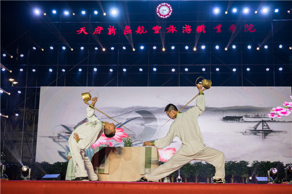 賽事期間,與會(huì)領(lǐng)導(dǎo)、老師和同學(xué)在天航體育場觀摩了由天府新區(qū)航空旅游職業(yè)學(xué)院組織的“迎接祖國70華誕,擁抱職業(yè)教育春天”主題文藝晚會(huì)。