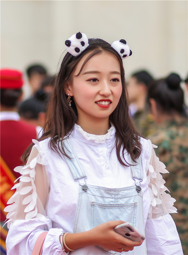 鏡頭三、在今天的新生報到中,最后兩名來到學校報到的是湖南新生何暢和山西新生趙苗菲,兩人走在紅毯上,“熊貓”頭飾好拉風,美女新生頭戴熊貓配飾走紅毯的圖片惹爆校園。據(jù)何暢同學介紹,四川是大熊貓的故鄉(xiāng),從今天開始,她倆便是“四川人”了,佩戴熊貓頭飾,也是隨鄉(xiāng)入俗,希望在今后的學習生活中,與四川的同學們成為好朋友吧!
