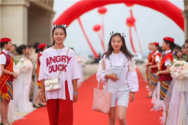 這是學院特意布置了“婚禮”現(xiàn)場?今天的新人,全是學院暑假后返校的學生和來自全國各地入校的新生,萬人走紅毯堪比婚禮現(xiàn)場更為隆重!