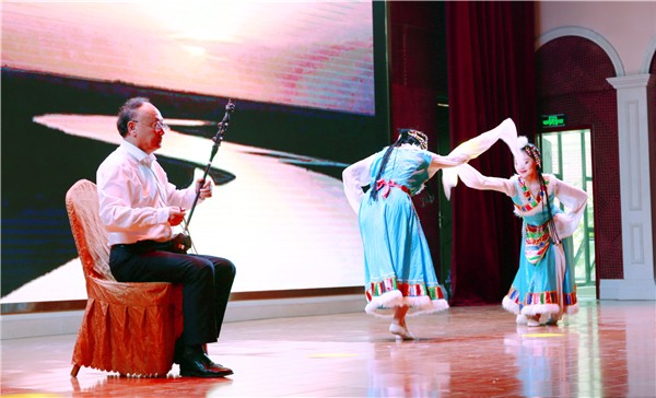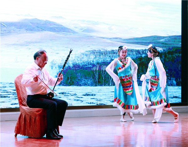 學院副院長唐健禾教授蕩氣回腸的二胡獨奏曲《天路》,將全場觀眾帶進了雪域高原,帶進了神奇的人間天堂,曲調悠揚令人陶醉,贏得了雷鳴般的掌聲。