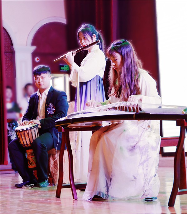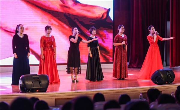 目前,教師藝術團下設四個小組——聲樂器樂、舞蹈禮儀、語言表演、體育運動。藝術團成員面向全院教師進行選拔。藝術團每學期結合節(jié)日活動、比賽演出,安排大型公演或不定期小型專場演出。當天,甫一亮相的教師藝術團為在場的教職工帶來了精彩紛呈的節(jié)目。