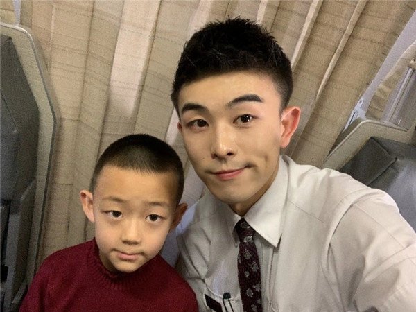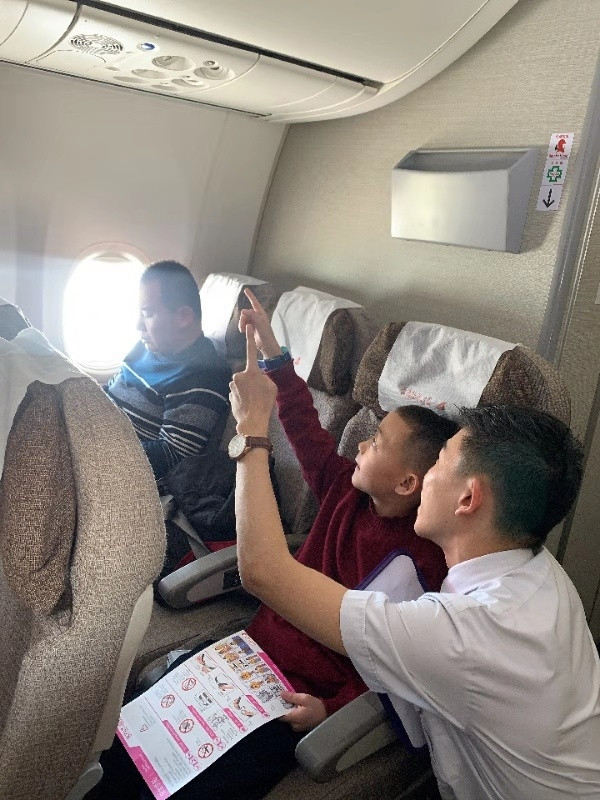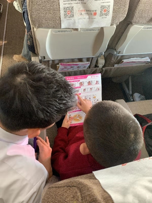他,叫李奕灼,這是他第二次來(lái)上海,他告訴我他很喜歡上海,這次回去過(guò)完年之后還想再來(lái)上海,乘務(wù)員看他仔細(xì)閱讀著我們的安全須知卡,好奇的他,問(wèn)了很多問(wèn)題,他說(shuō)下次還想坐我們的飛機(jī)去上海,去他一直想去的迪士尼樂(lè)園。